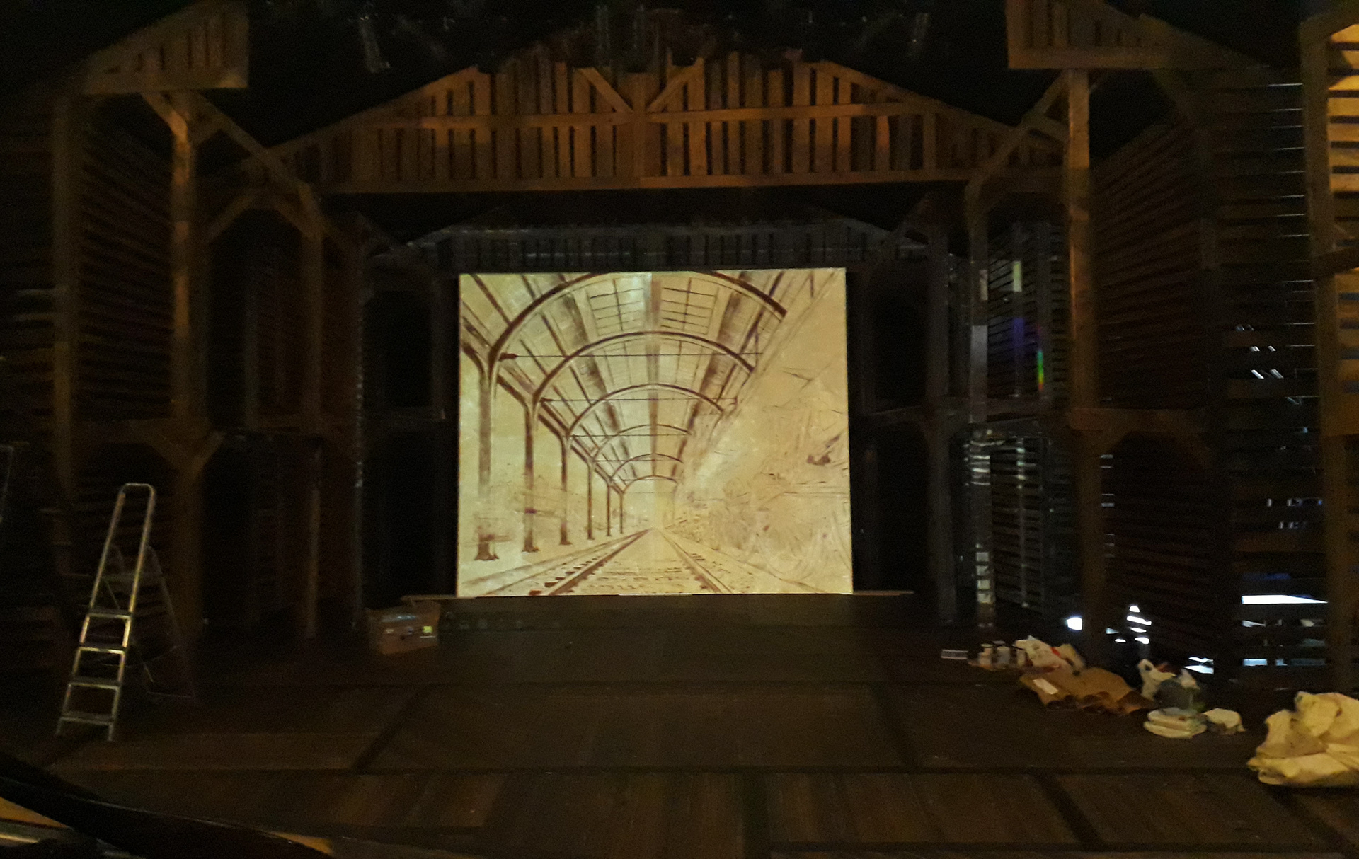 Prossessbilder frå arbeidet med to store bakgrunnsbilder / scenografi for musikalen "Lady Arbuthnott" (2019). /